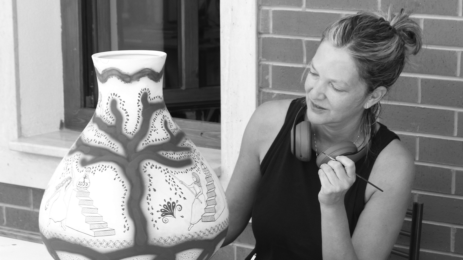 Yaldızla boyanmış kadın figürleri, vazoların yüzeylerinde, ev içi emekten tarıma, dokumacılıktan çömlekçiliğe kadar uzanan geleneksel kültürel pratiklerin taşıyıcısı olarak beliriyor. Uras, bu değeri çoğu zaman göz ardı edilen emek biçimlerini direnişin, dayanıklılığın ve sürekliliğin güçlü anlatılarına dönüştürerek, onları mitik ve zamansız bir forma kavuşturuyor.