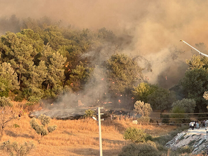 İhbar üzerine bölgeye İzmir Orman Bölge Müdürlüğü’ne ait hava unsurları ile çok sayıda arazöz sevk edildi.
