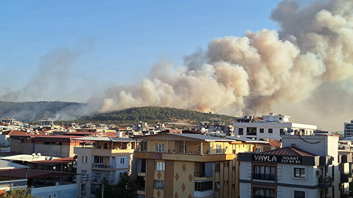 İzmir’in Buca ilçesinde bir minibüste çıkan ve ormanlık alana sıçrayan yangın, Bayraklı Sahili’nden de görüldü.